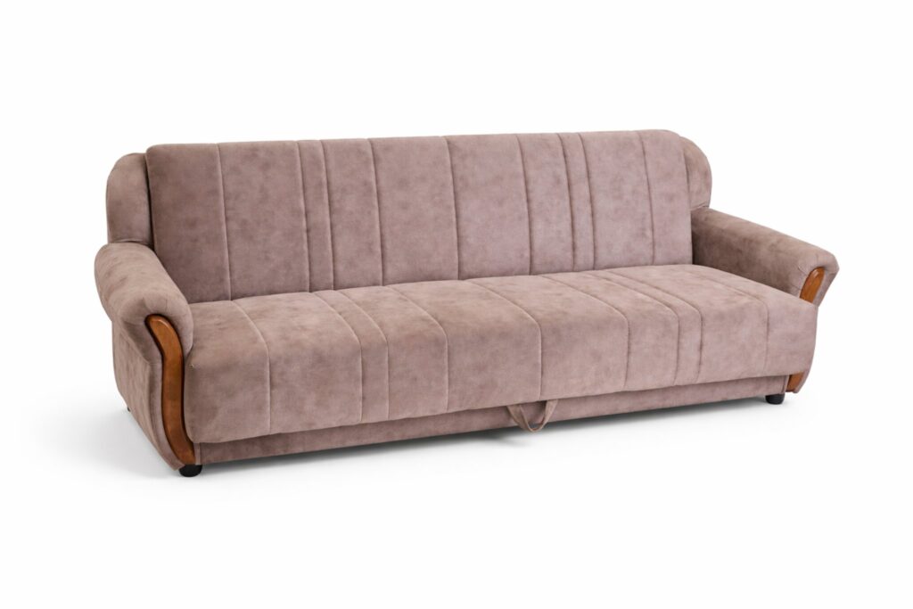 Ovaj elegantni trosed predstavlja savršen spoj modernog dizajna, udobnosti i funkcionalnosti. Presvučen je kvalitetnim, prijatnim štofom u toploj bež nijansi koja se lako uklapa u različite stilove enterijera – od klasičnih do savremenih. Poseduje kutiju za posteljinu, način razvlačenja klik-klak mehanizam.