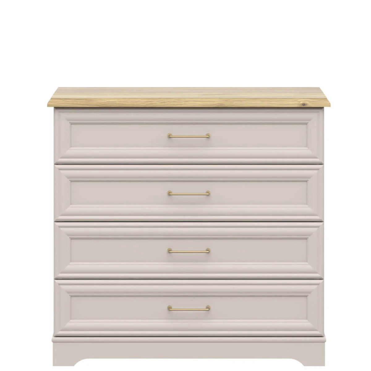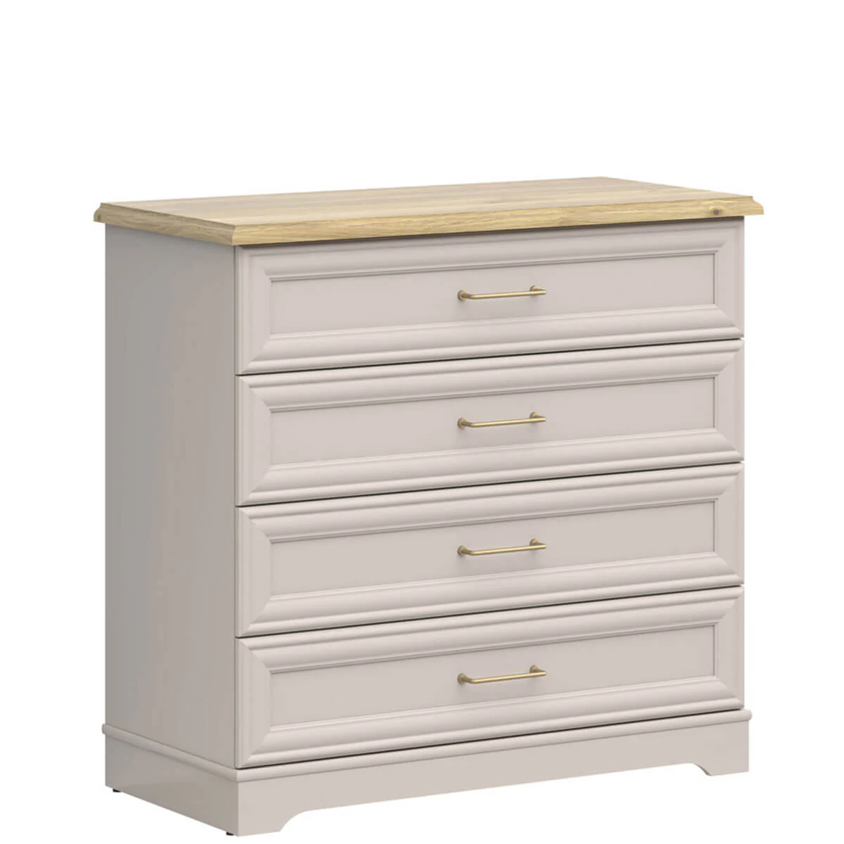 Četiri prostrane fioke pružaju obilje prostora za odlaganje garderobe, posteljine ili drugih ličnih stvari, omogućavajući savršenu organizaciju prostora. Profilisani frontovi i diskretne metalne ručice doprinose prefinjenom izgledu, dok stabilna konstrukcija garantuje dugotrajnost i pouzdanu svakodnevnu upotrebu.