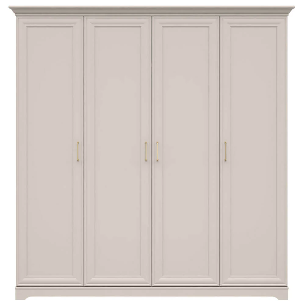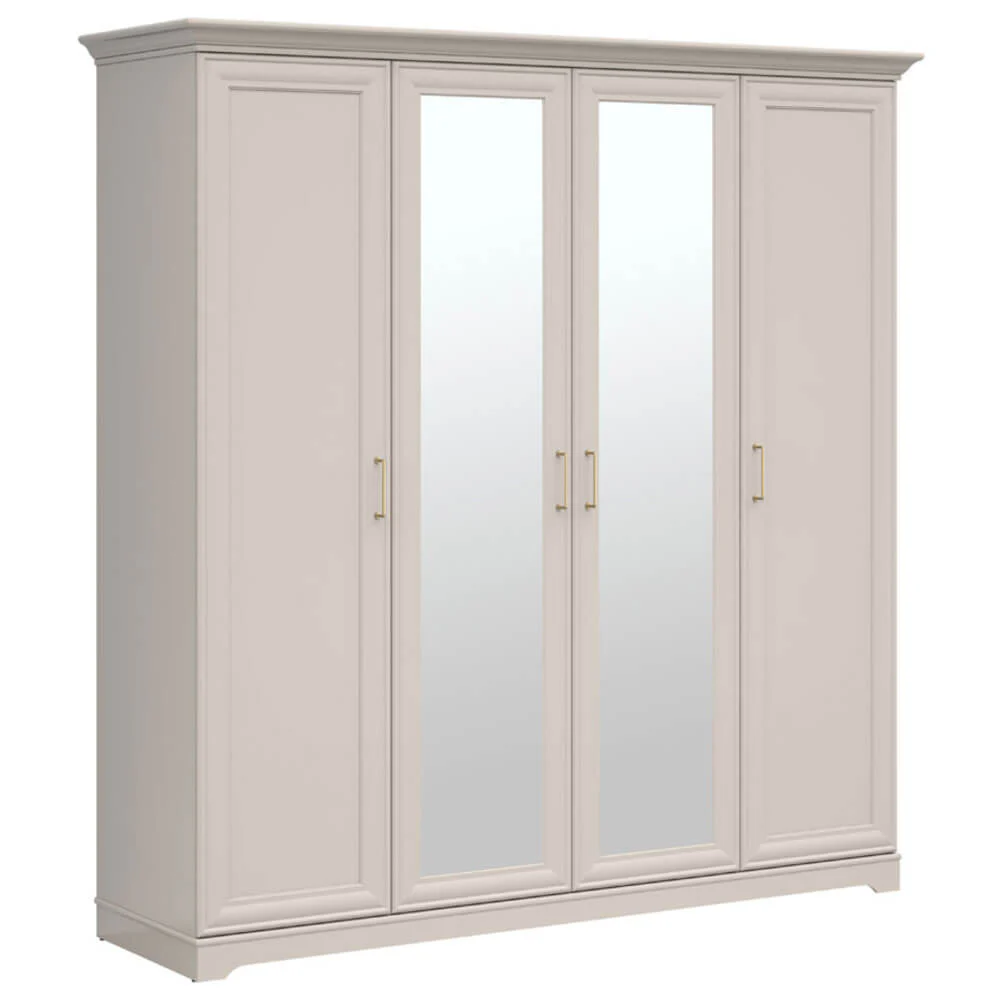 Ormar ANGA odiše bezvremenskom elegancijom i funkcionalnošću, savršeno uklapajući klasičan dizajn u savremeni životni prostor. Svetla kolor paleta i profinjeni detalji daju ormaru lagan i sofisticiran izgled, dok centralna ogledala vizuelno proširuju prostor i doprinose dodatnoj praktičnosti u svakodnevnoj upotrebi.