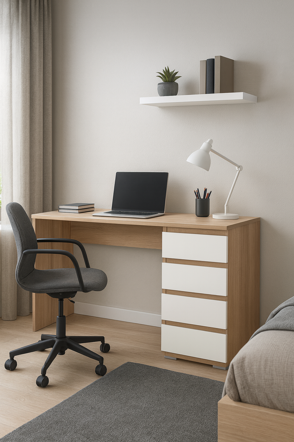 Nežna kombinacija boje drveta i bele boje, učiniće da svaki rad za kompjuterskim stolom Bonn bude lakši.