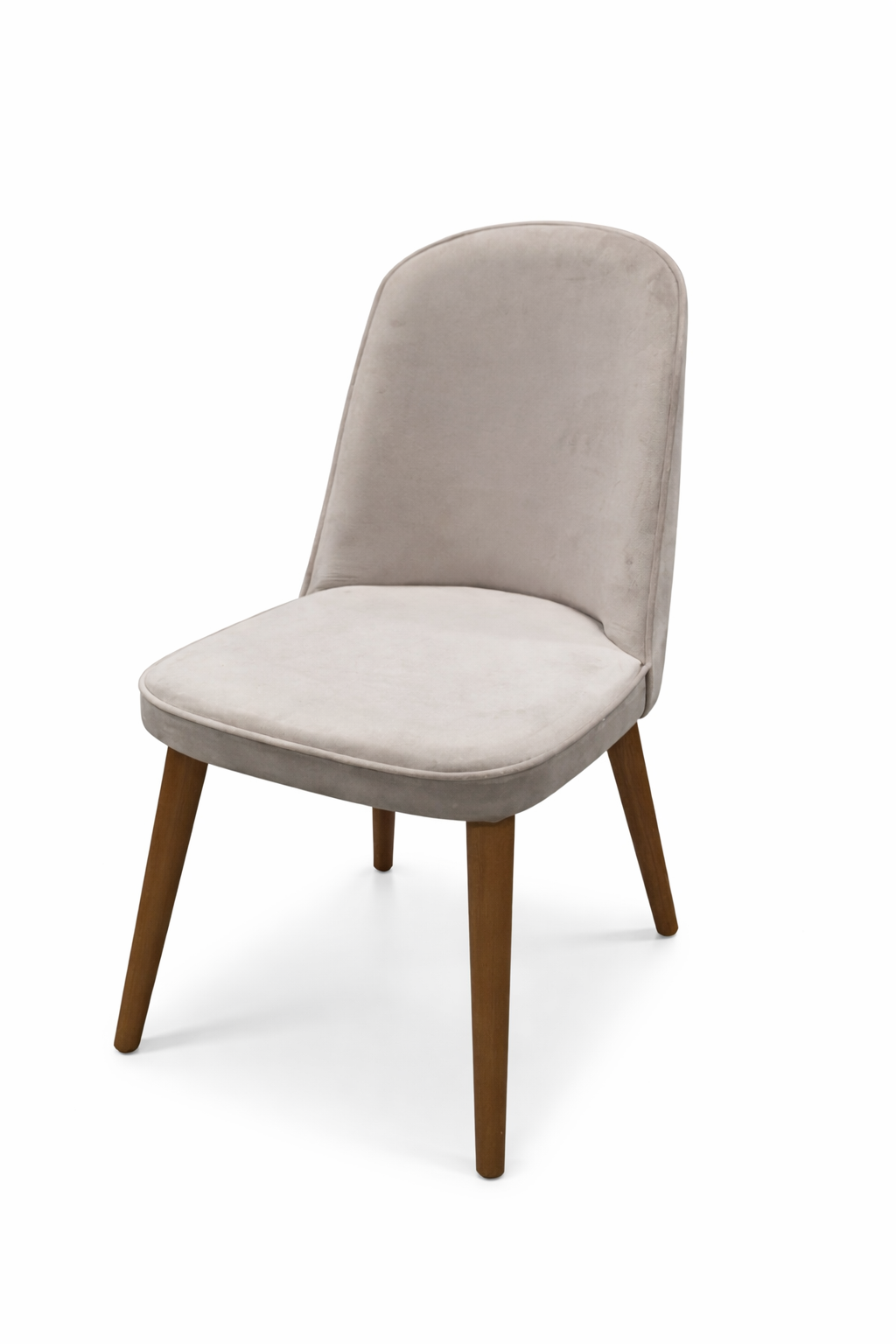 Ova moderna trpezarijska stolica odlikuje se nežnom bež nijansom i sofisticiranim, blago zaobljenim naslonom koji pruža optimalnu podršku leđima. Presvučena je kvalitetnim, prijatnim štofom finog tkanja koji daje toplinu i eleganciju svakom prostoru.