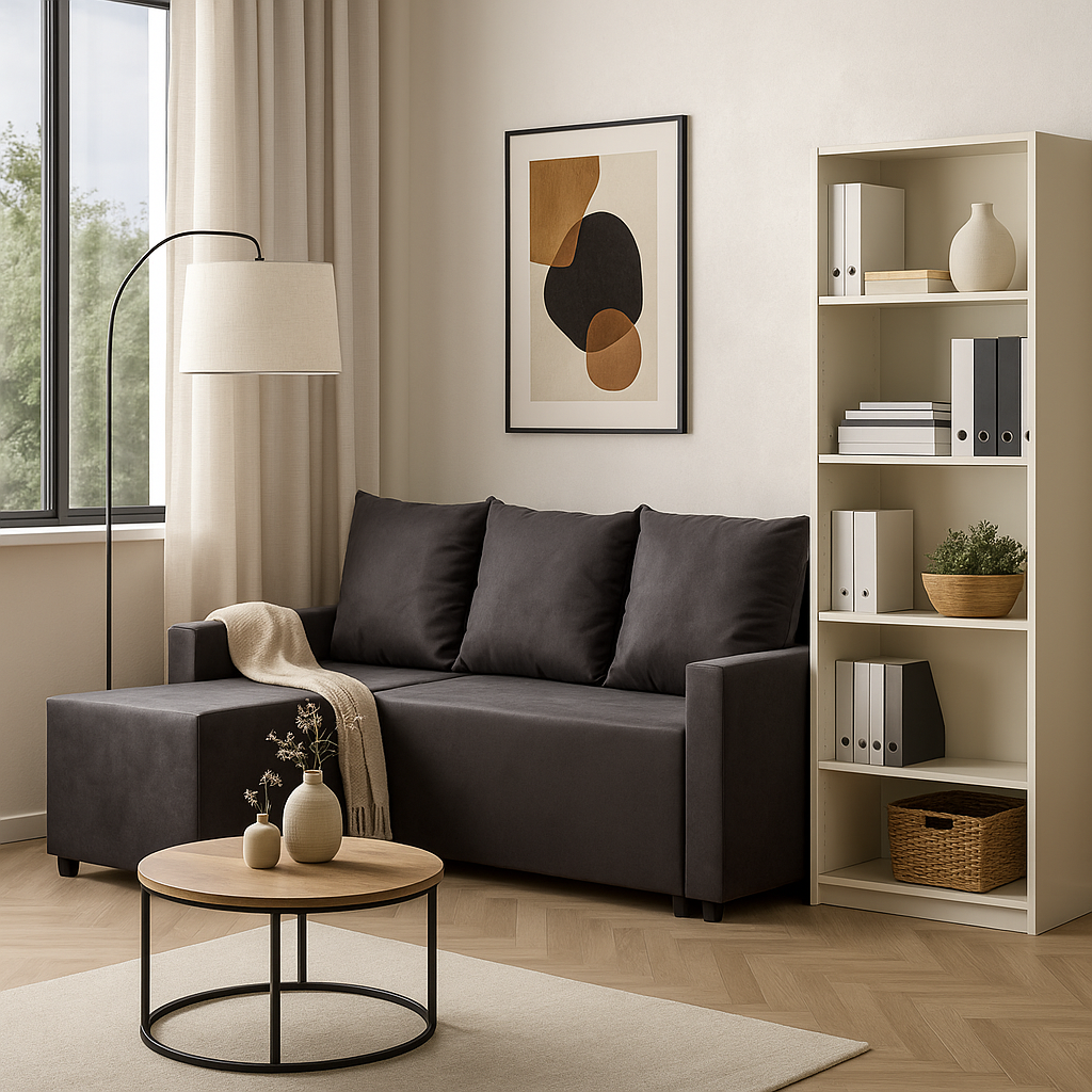 Elegantna i praktična, ova manja ugaona garnitura u tamno sivoj boji savršen je izbor za moderne dnevne sobe. Njen kompaktan dizajn štedi prostor, dok udobno sedenje i neutralna nijansa omogućavaju lako uklapanje u svaki enterijer.